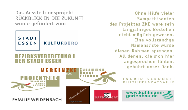 meine im Februar 2020 eröffnete retrospektive Jubiläumsausstellungsreihe in der Großen Kunstgalerie des Projektes ZKE auf der Zeche Königin Elisabeth wird vom 10. September bis zum 12. November 2021 mit der Ausstellung